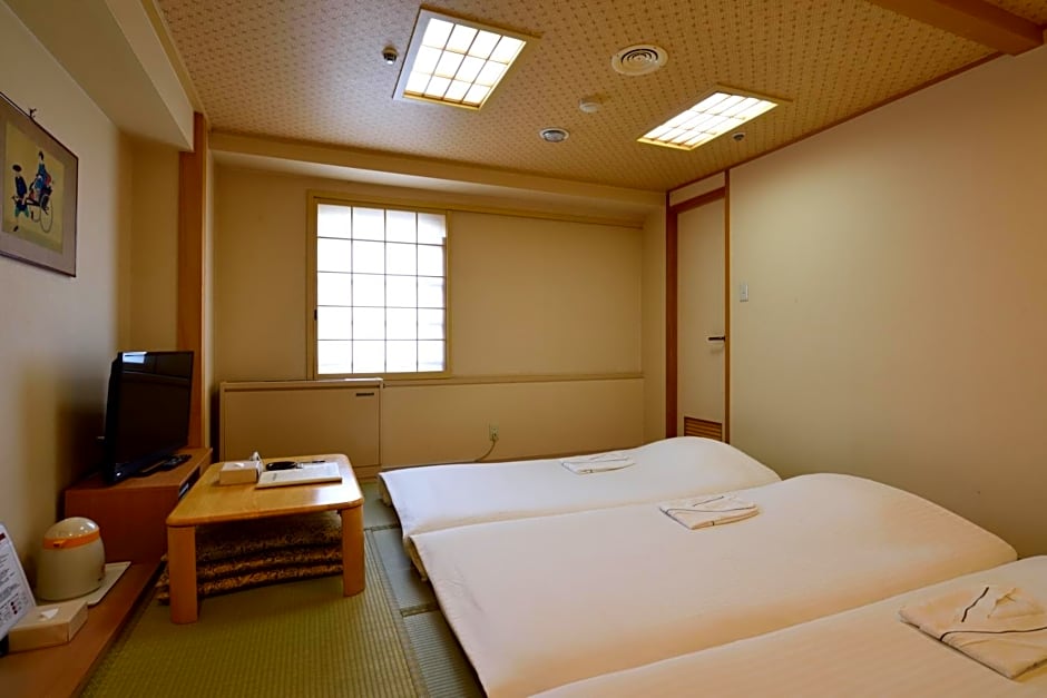 This triple room features a fireplace. Providing free toiletries and bathrobes, this triple room includes a private bathroom with a bath, a shower and a bidet. The air-conditioned triple room provides a flat-screen TV, tatami, a tea and coffee maker and a carpeted floor. The unit offers 3 futons.
